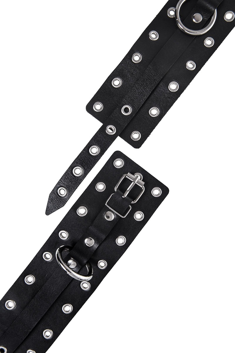 Эти однослойные кожаные оковы с контрастной строчкой красного цвета могут стать стильным аксессуаром, а могут послужить вашим целям по своему прямому назначению. Частичное обездвиживание и невозможность двигать руками или ногами дают вам полную власть над партнером – взрослые игры для взрослых. Наличие двух колец и карабинов, соединенных между собой кожаным ремешком, позволяет использовать изделие как раздельно – аксессуар-манжеты, так и как оковы для фиксации. К широким металлическим кольцам также можно присоединить и другие аксессуары при помощи карабинов. Благодаря универсальному размеру оковы могут использоваться и мужчинами, и женщинами. Размер легко регулируется с помощью металлических пряжек, органично вписывающихся в общий стиль. Длина манжет - 25 см, ширина - 6,5 см. Длина сцепки - 17 см.
