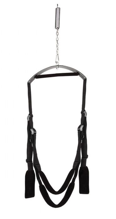 Потолочные качели для воплощения любых эротических фантазий! С этим девайсом невозможное станет возможным! Добавьте разнообразия с свою сексуальную жизнь - эти качели позволят Вам опробовать огромное количество секс-позиций, которые раньше были просто недоступны! В комплект входит все, что потребуется для закрепления этих качелей на потолке, а съемный карабин позволит вешать качели только когда это необходимо. Мягкие черные чехлы и прочные стропы обеспечивают максимально комфортное использование качелей. Заявленная прочность - вес до 200 кг.Качели крепятся к потолку, изображенный на коробке напольный каркас не является частью комплекта.